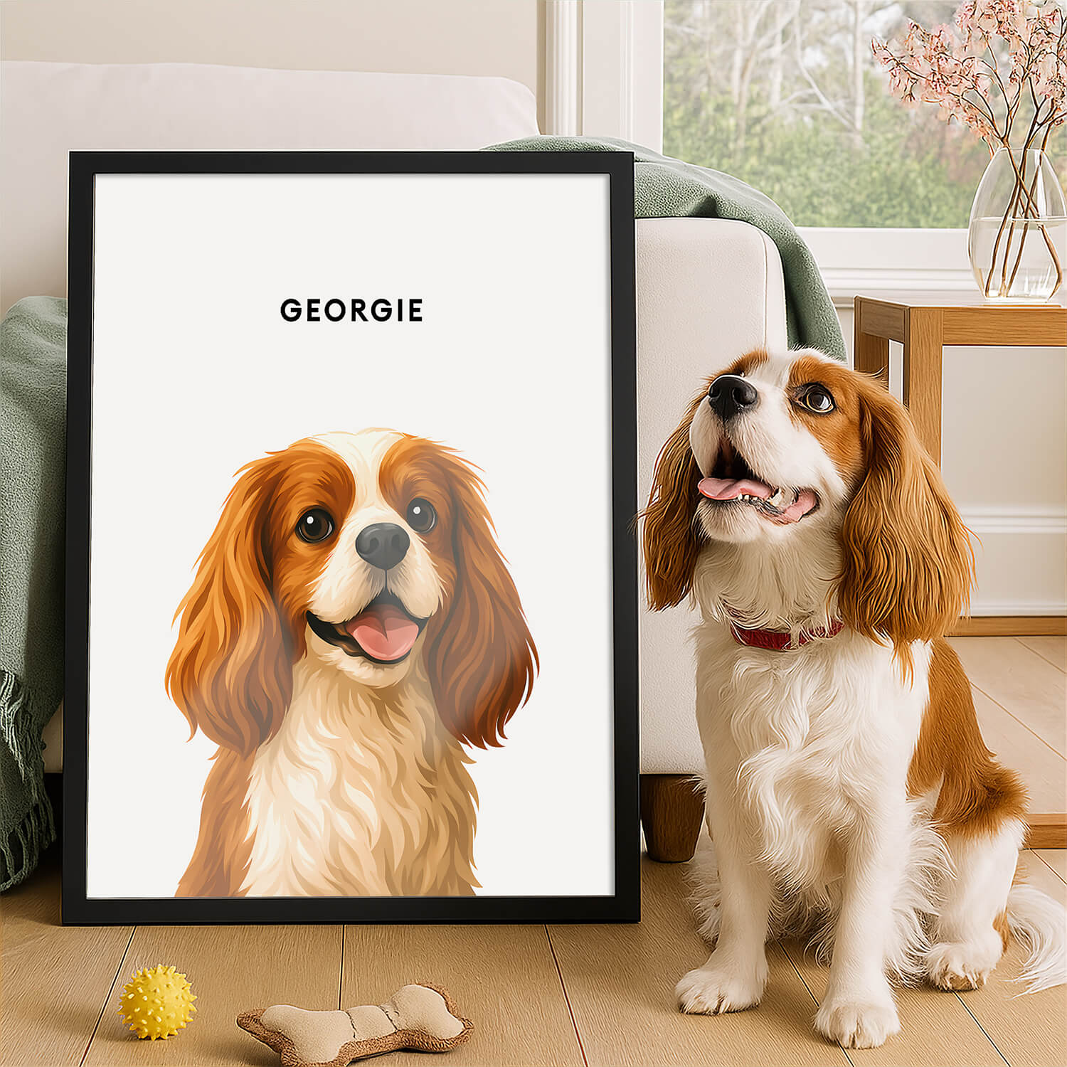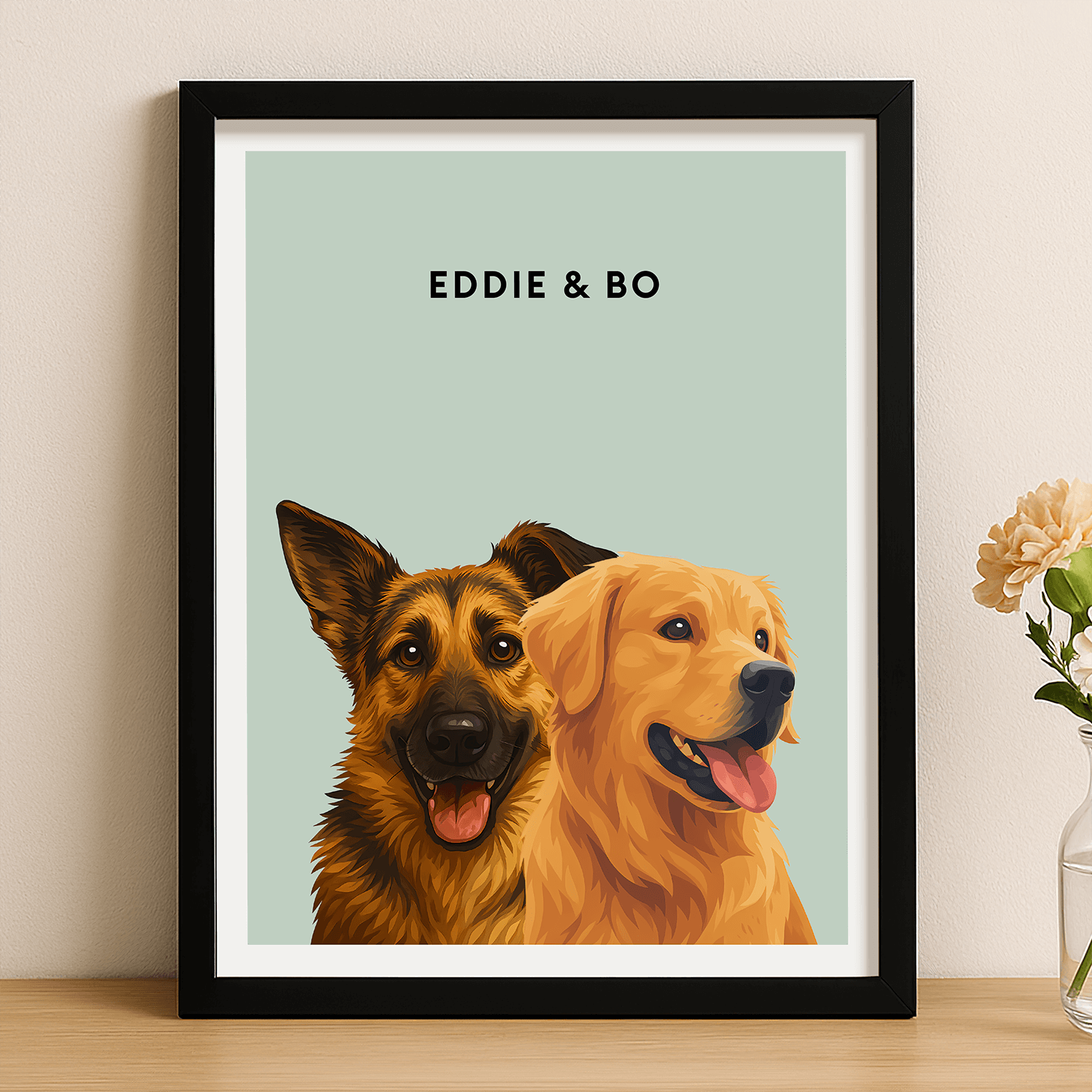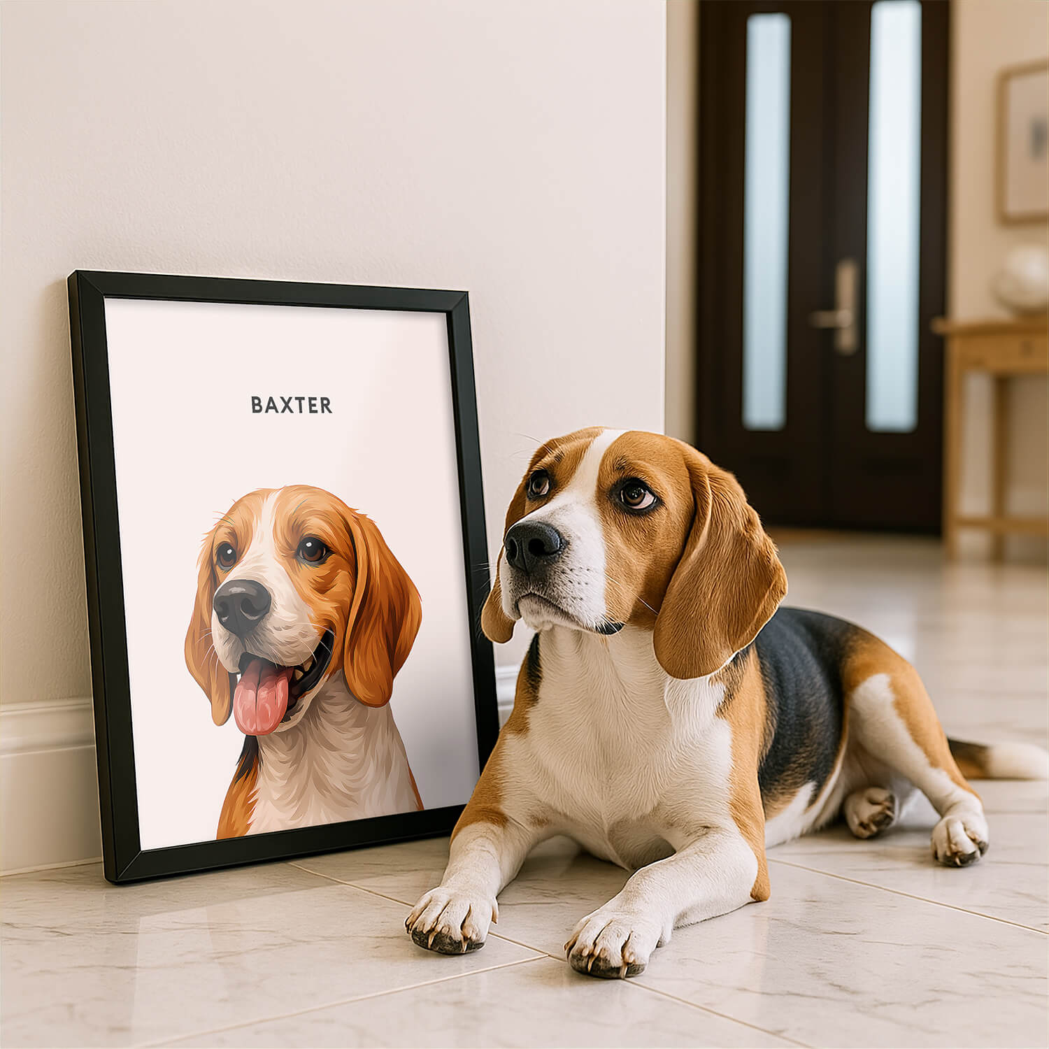 Capture your beloved pet's unique charm with a custom pet portrait. Lovingly designed by real artists and printed on museum-quality paper and a solid-wood frame.