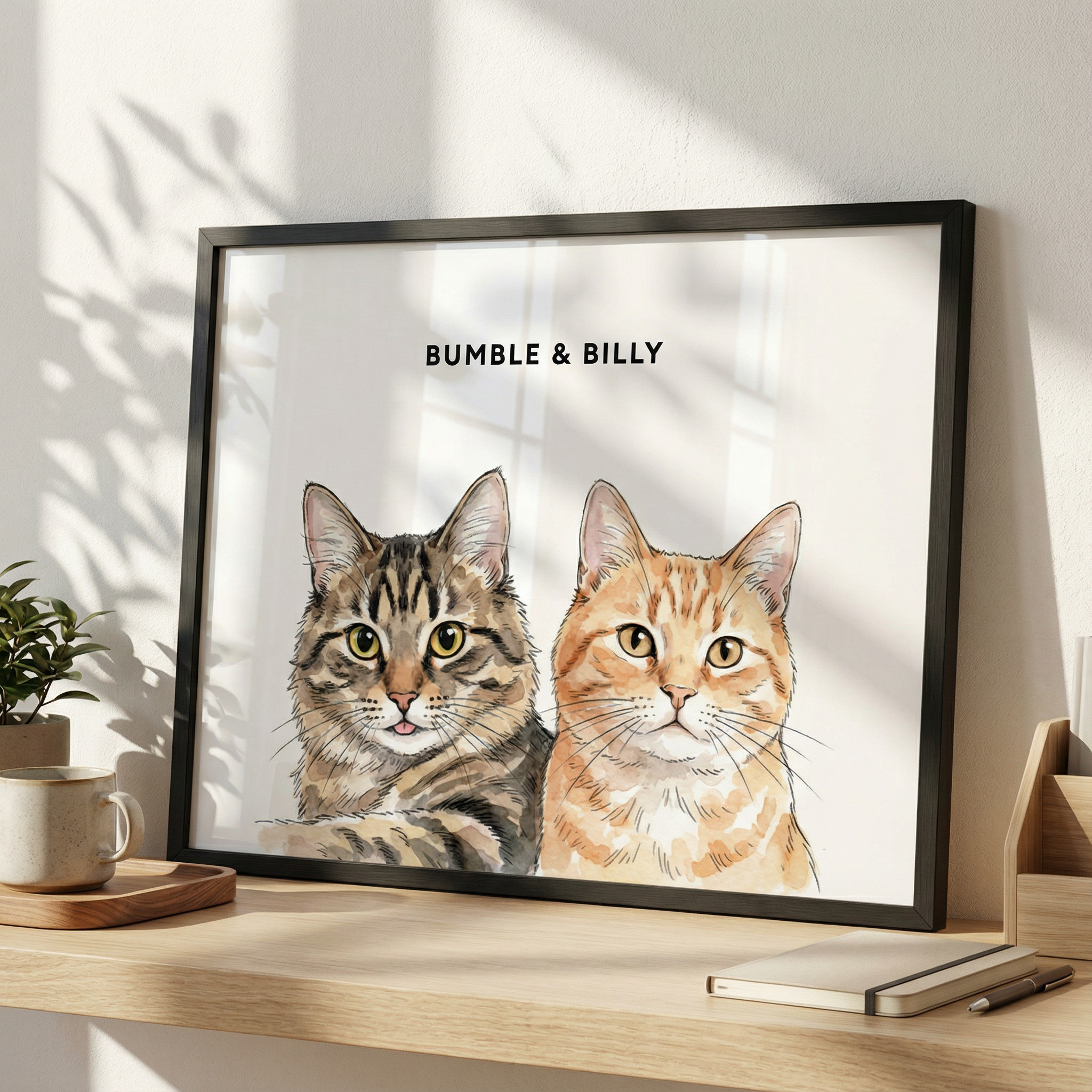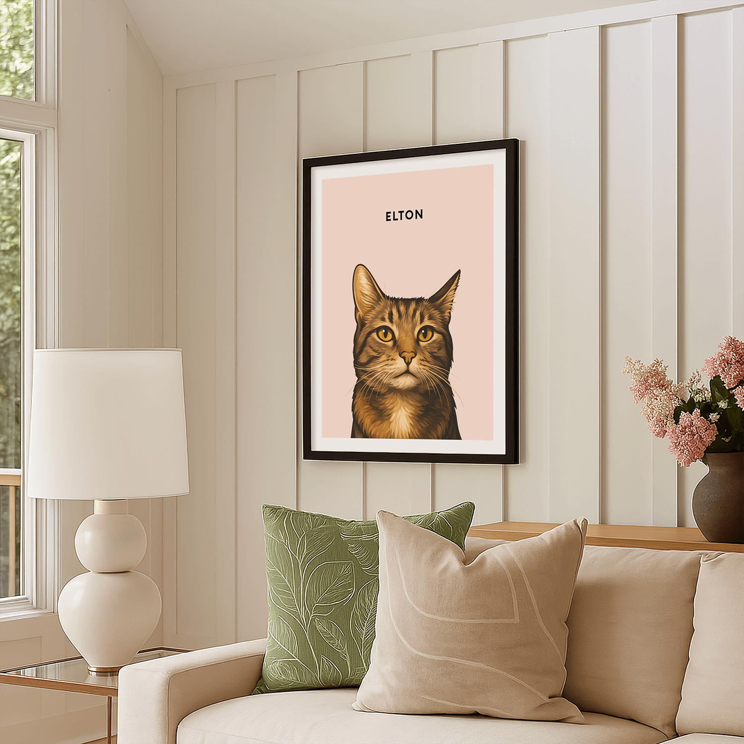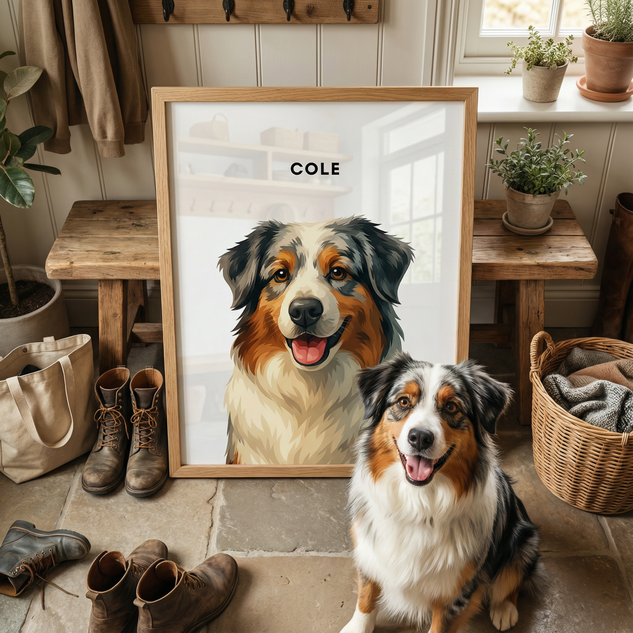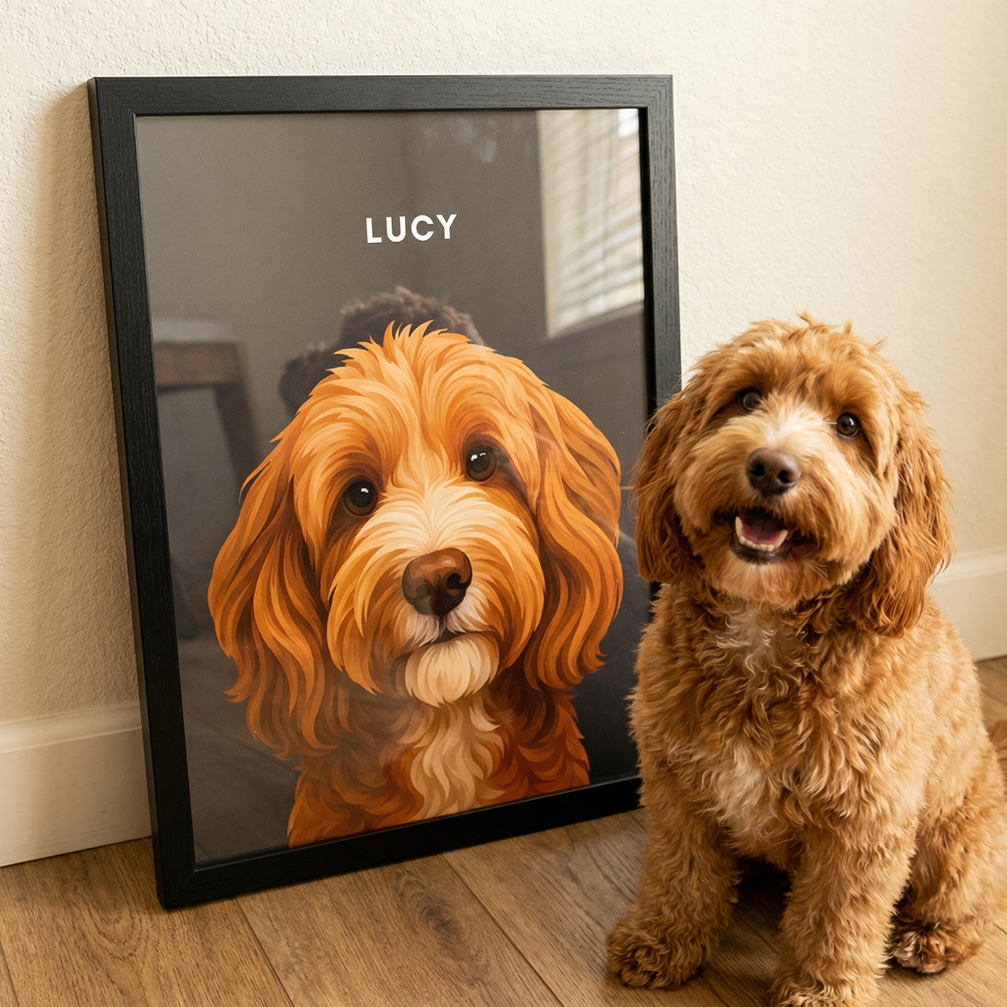 Capture your beloved pet's unique charm with a custom pet portrait. Lovingly designed by real artists and printed on museum-quality paper and a solid-wood frame.
